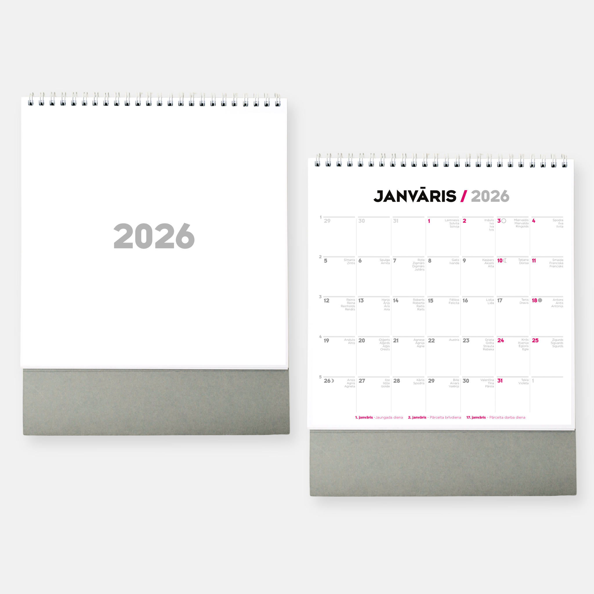 Ko darīt, ja lielais sienas kalendārs nav pie rokas, bet datumus un svarīgus notikumus nepieciešams paturēt redzeslokā, teiksim, tepat uz rakstāmgalda? Protams, tad ņemam talkā galda kalendāru. Tas Tev netraucēs, jo ir tikpat neitrāls un mierīgs kā lielie brāļi – sienas kalendāri, bet arī vietas ir gana daudz, lai atzīmētu un pierakstītu svarīgāko.