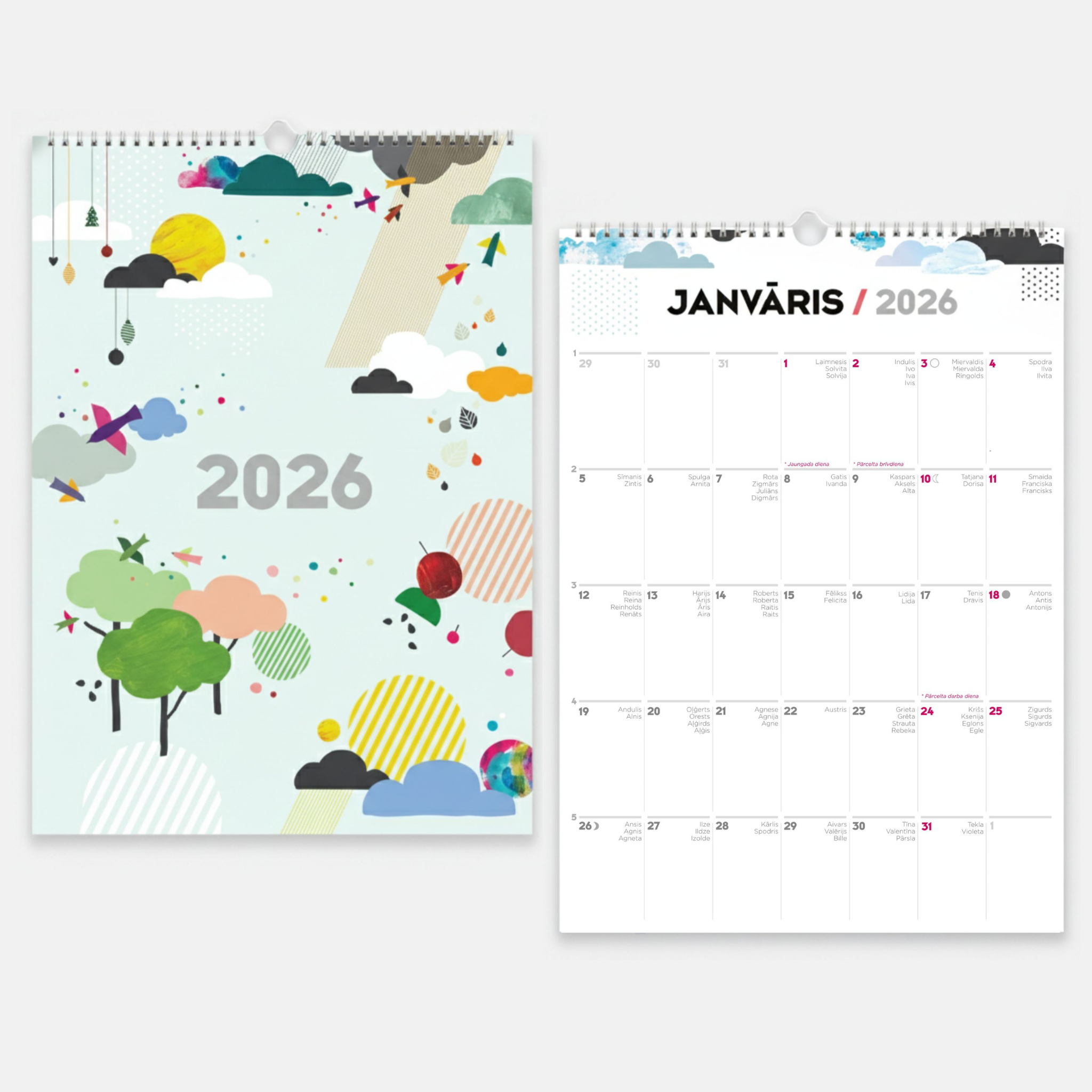 • Kalendāram ir balta spirāle ar āķīti