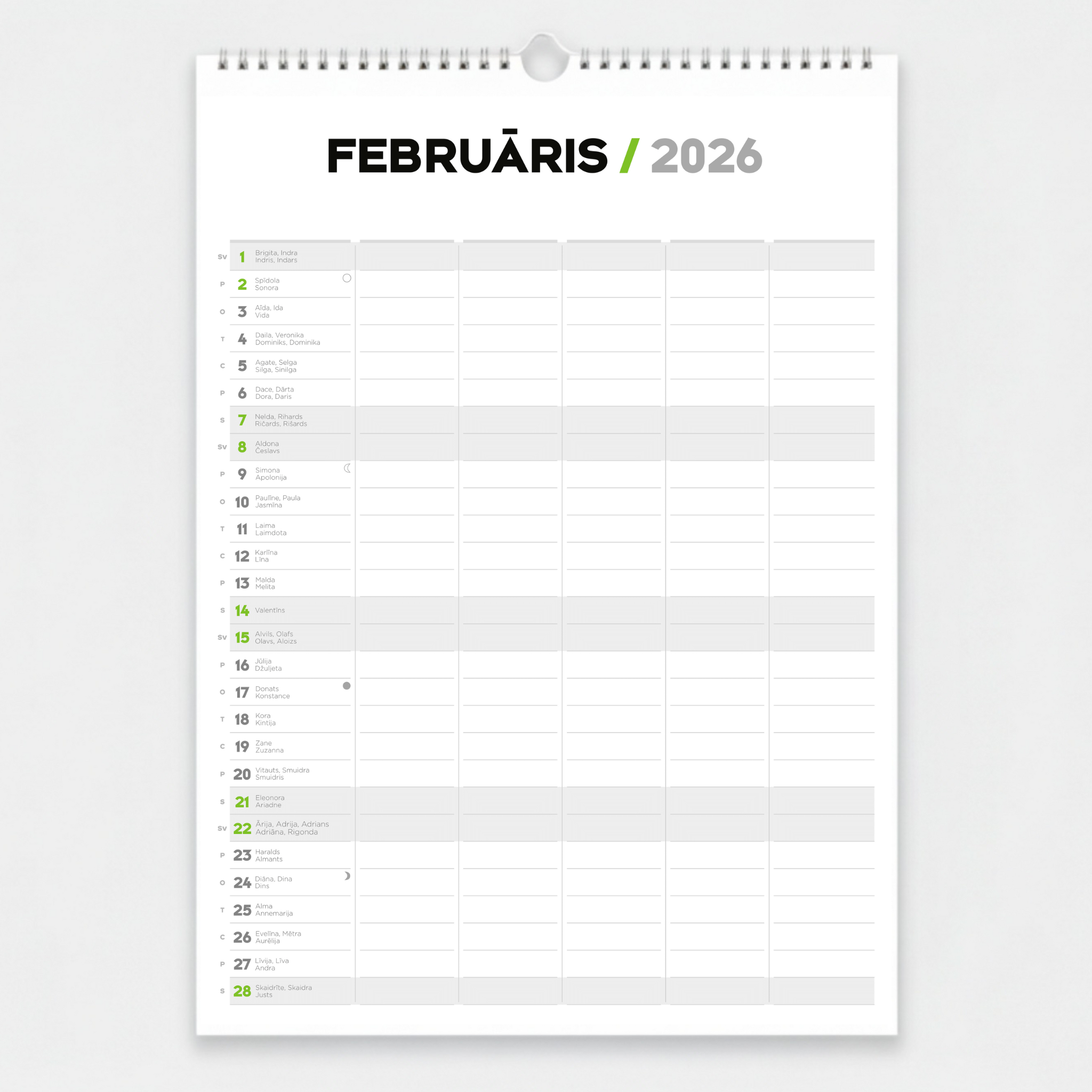 Kalendārs viens, bet plāni – katram savi? Tā nav problēma: ņemam vertikālo kalendāru un rakstām katra ģimenes locekļa plānus savā kolonnā. Viss skaidri, pārskatāmi un nekas netiks palaists garām. Protams, arī šajā kalendārā nav nekā lieka, lai varat aizpildīt to ar savām krāsainajām idejām un plāniem. Un varbūt bērni jau var aizpildīt savu kolonnu paši?
