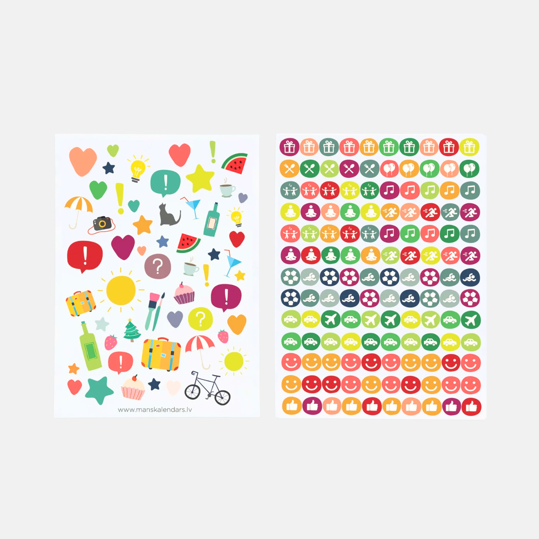 Komplektā ietilpst divas A5 izmēra uzlīmju lapas.
